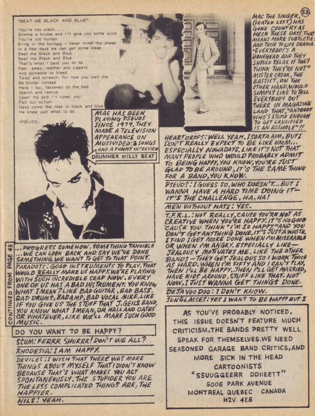 Sugar Diet Magazine #1 (Montreal, 1984): Page 53 of 84 (click image to go to next page).