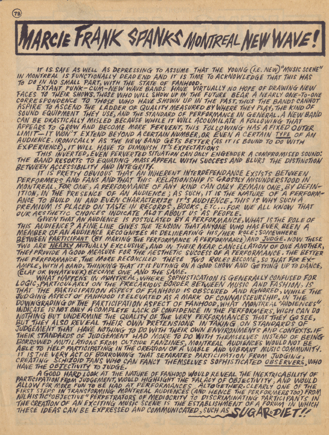 Sugar Diet Magazine #1 (Montreal, 1984): Page 78 of 84 (click image to go to next page).