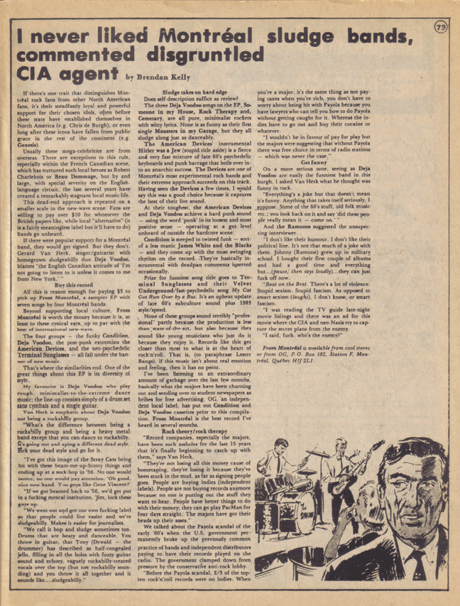 Sugar Diet Magazine #1 (Montreal, 1984): Page 79 of 84 (click image to go to next page).